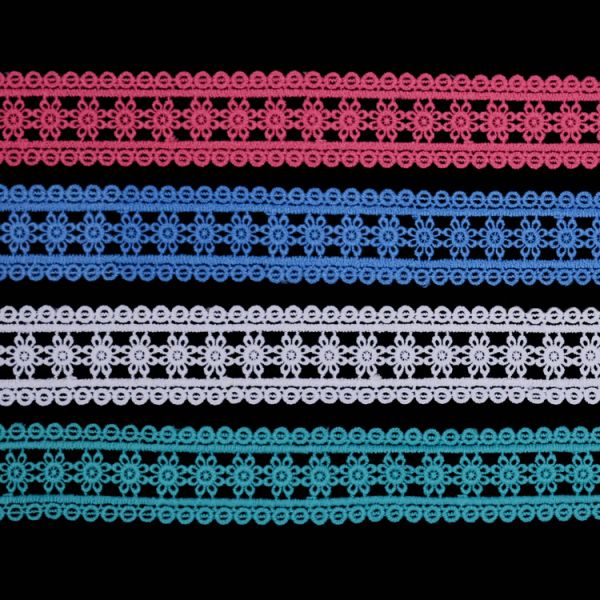 | Product Type: | 3.2cm width Colored Flower Decor Polyester Embroidery Lace Trimmings for Ladies Garments |